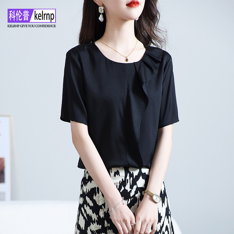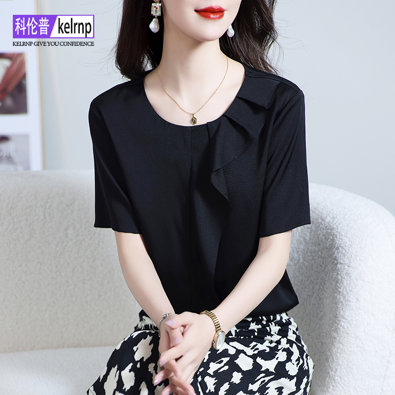 重磅真丝绸缎面t恤女2025夏新款 花边名媛印花双乔桑蚕丝上衣 短袖