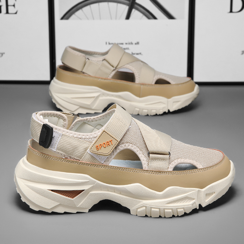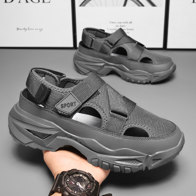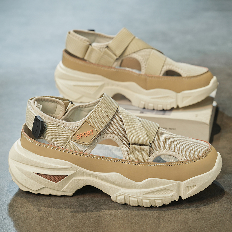 透气网面户外运动休闲包头外穿钓鱼防滑沙滩凉鞋 椰子洞洞鞋 男夏季