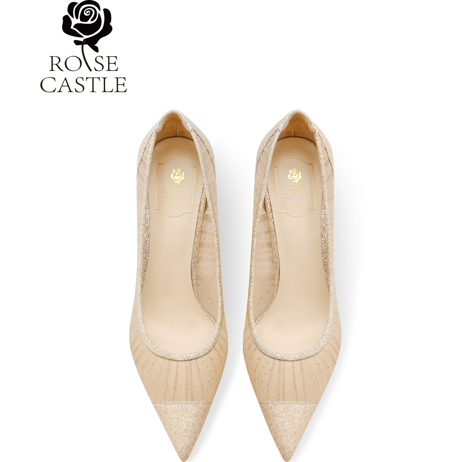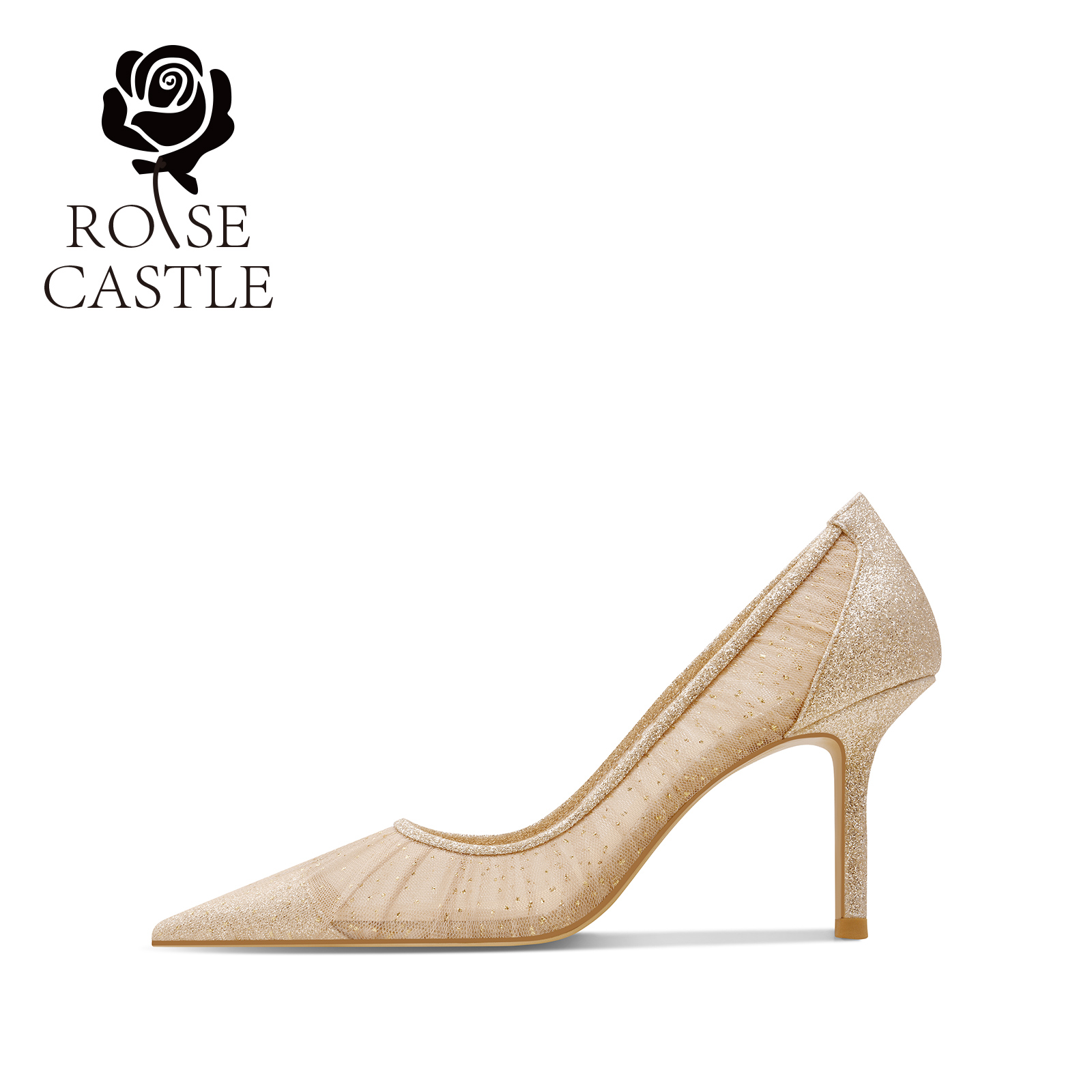 日常通勤单鞋 rosecastle金色婚鞋 蕾丝礼服高跟鞋 新款 女2025夏季