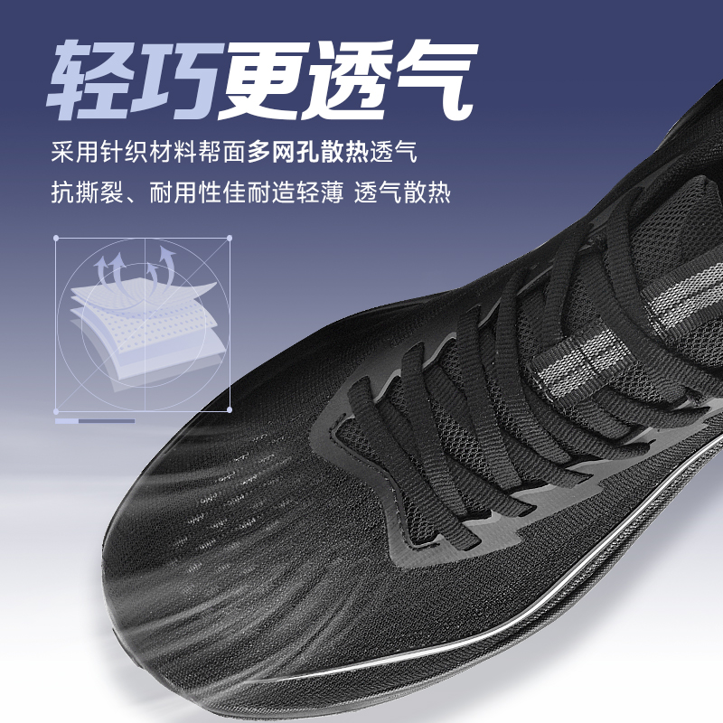 网面皮面跑步鞋 轻便通勤运动鞋 黑色鞋 减震耐磨跑鞋 子秋季 安踏男鞋