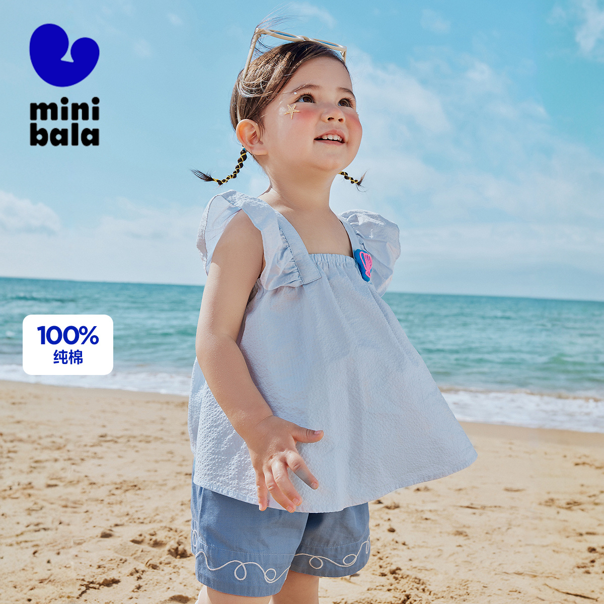 夏宝宝方领飞袖 衬衫 迷你巴拉巴拉女童短袖 甜美上衣 商场同款