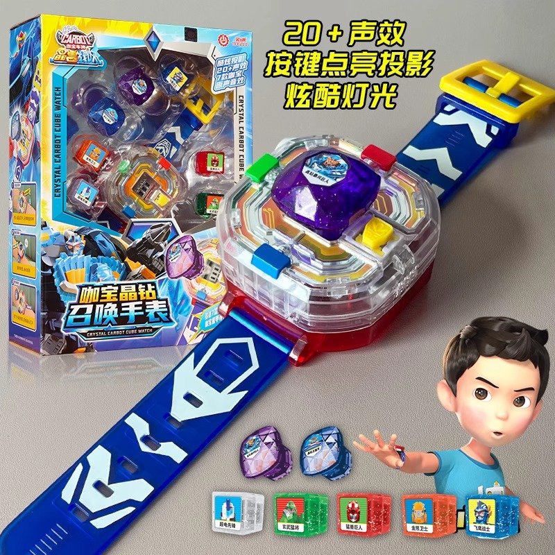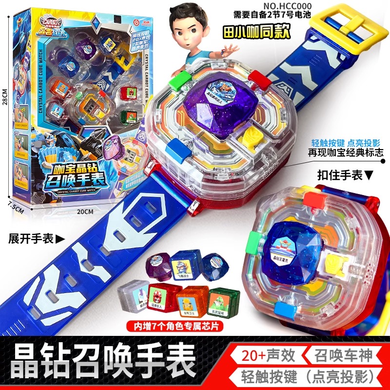 新品 咖宝车神晶兽战队晶钻召唤手表儿童声光变身器魔方投影玩具
