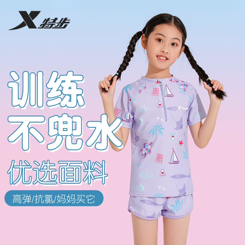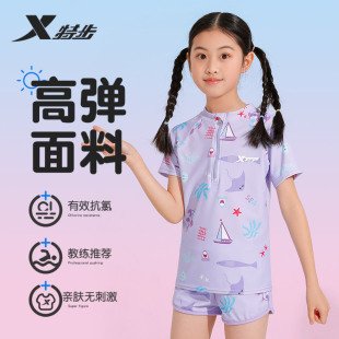 特步儿童泳衣女童2025新款 分体舒适防晒速干中大童专业游泳衣女孩