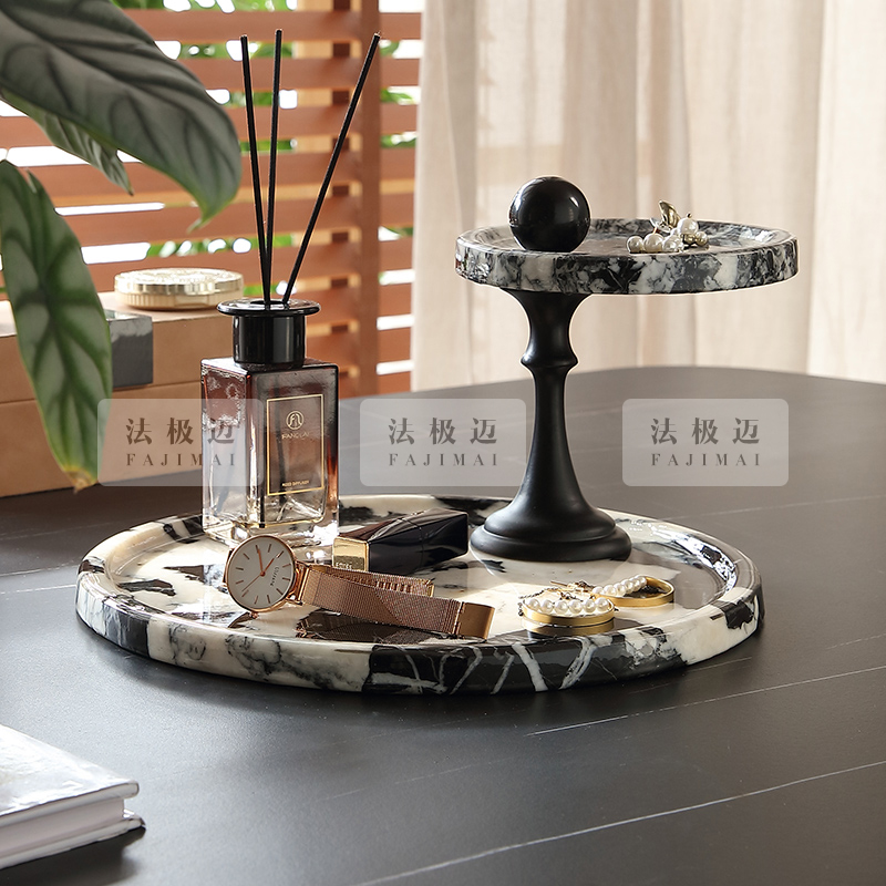 天然大理石艺术感桌面双层置物架玄关收纳香薰托盘首饰香水收纳盘