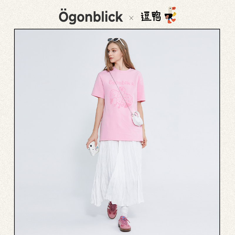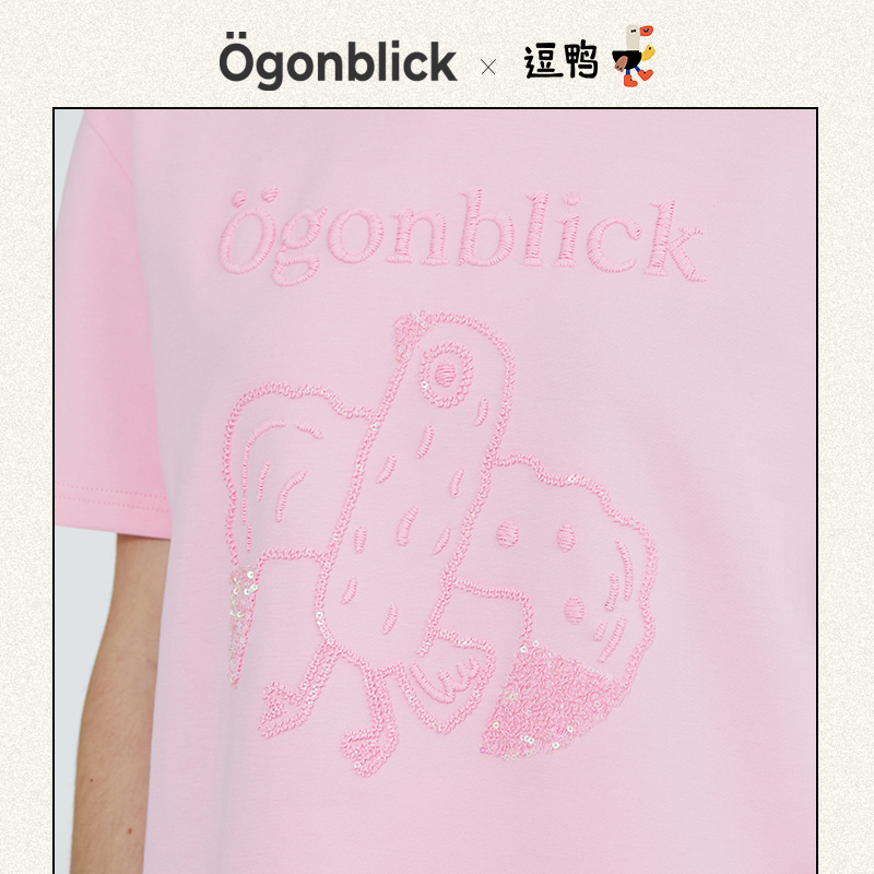 宽松短袖 新款 百搭显瘦上衣 北欧时刻钉珠刺绣T恤女夏季 黄霄云同款