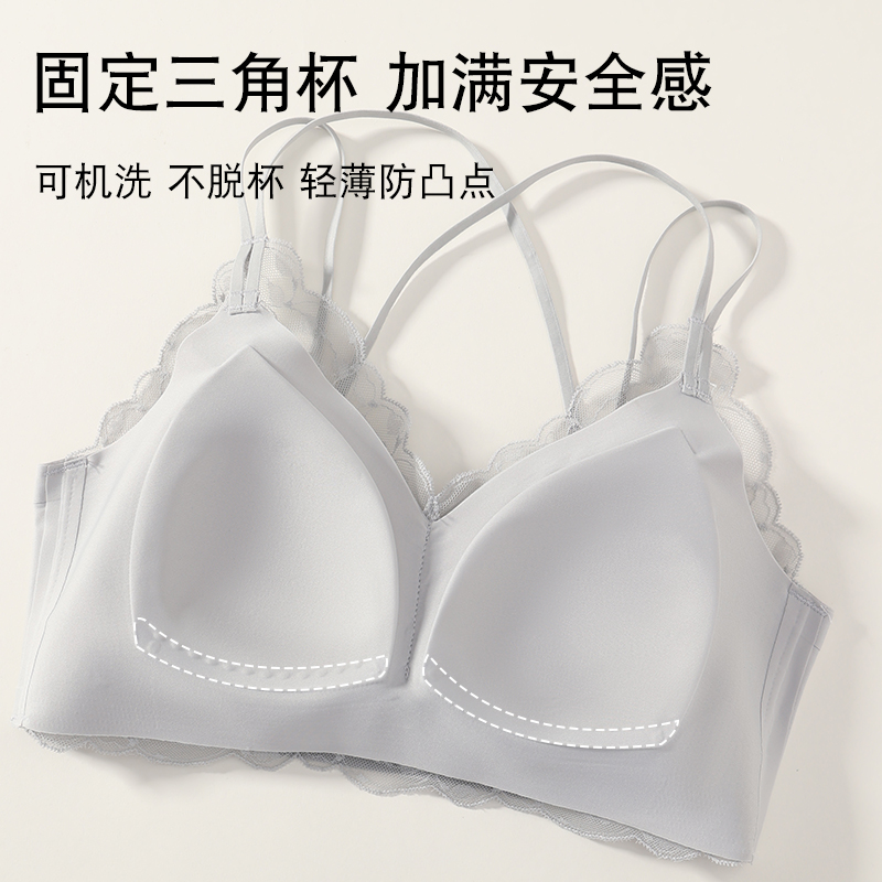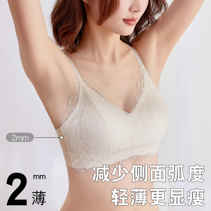 猫人内衣女夏薄款 三角杯提拉大胸显小细肩带美背文胸 小胸聚拢法式