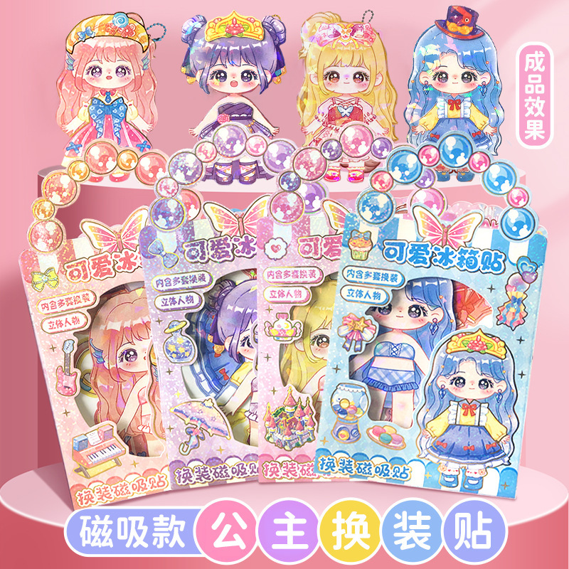 儿童换装 磁力贴纸女孩公主diy反复贴贴画玩具可爱冰箱贴立体磁吸