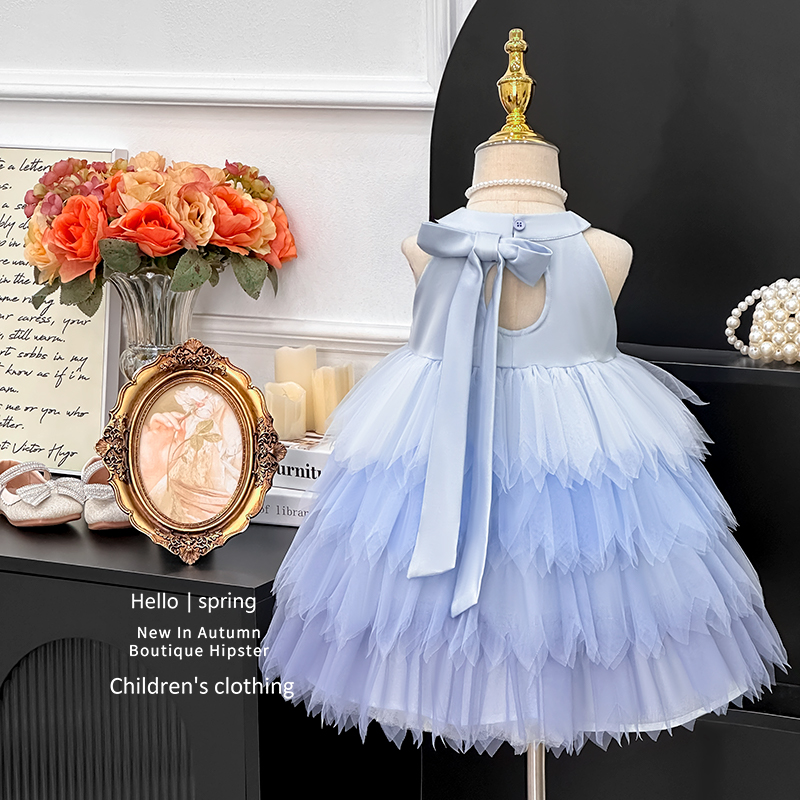 立体花瓣挂脖蕾丝连衣裙女夏季 名媛短裙 设计感小众掐腰小香风法式