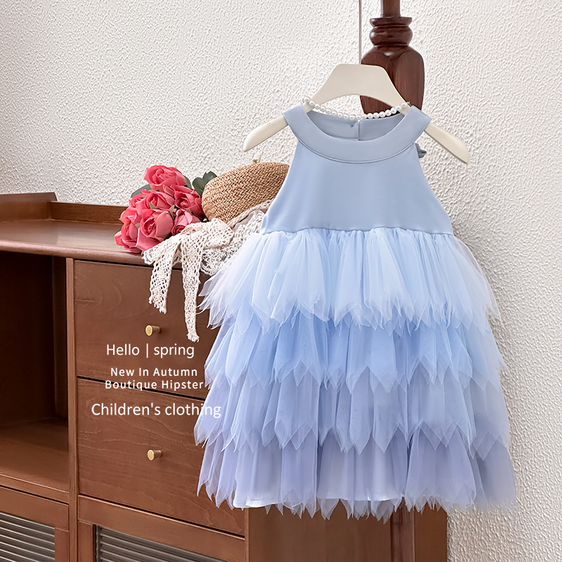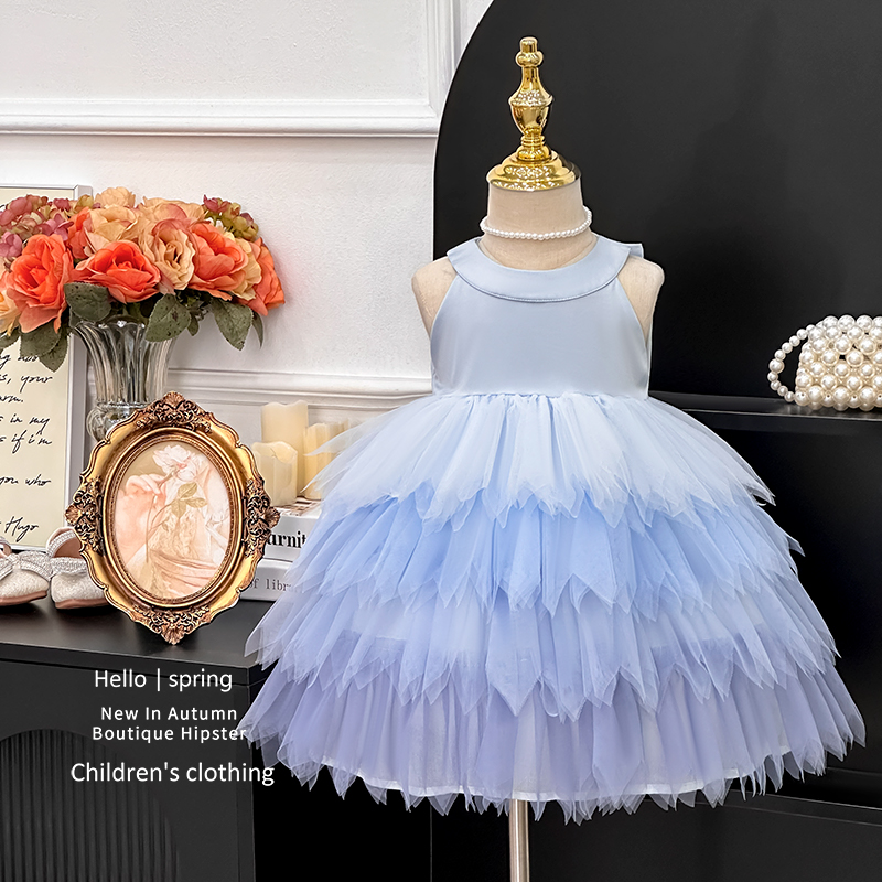 新款 衣纱布菲仙云 晕染欧根纱连衣裙2025夏季 泡泡袖 显瘦A字裙 法式