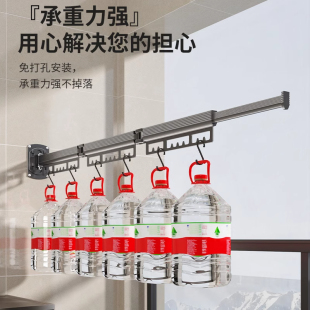 四季 沐歌阳台折叠晾衣架免打孔家用壁挂隐形收缩凉衣杆子伸缩神器