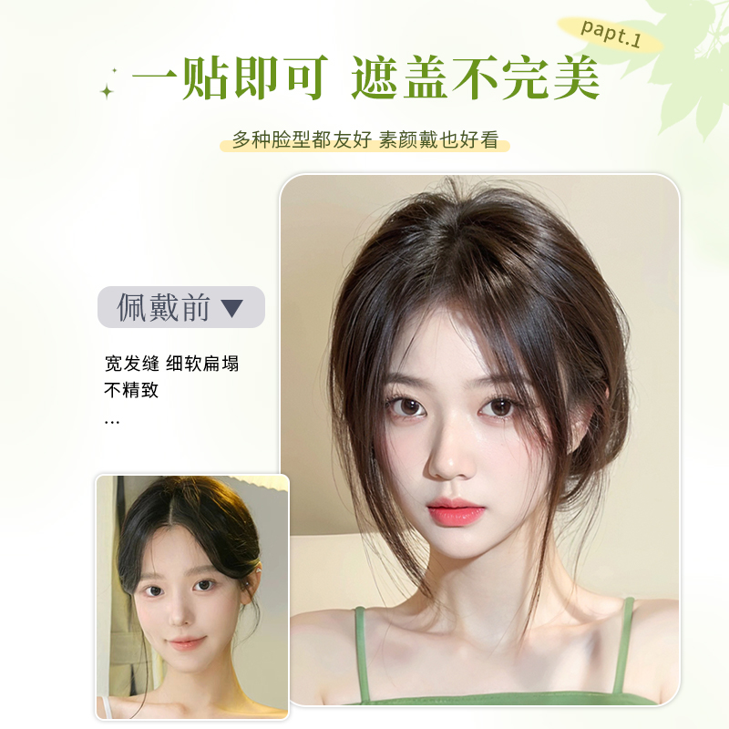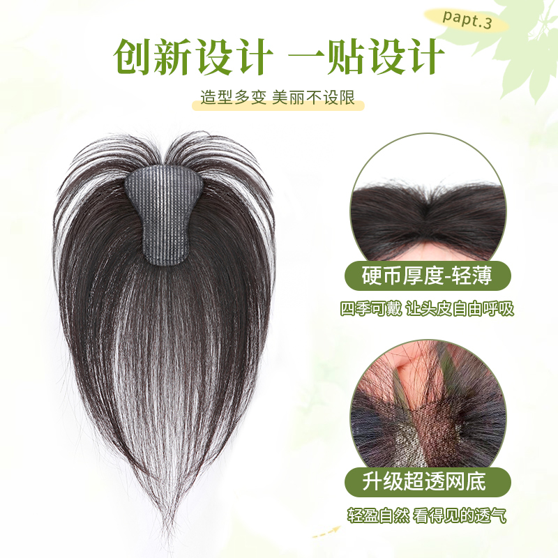 假发女片头补发真发轻薄无痕隐形增发量刘海片遮白发遮头顶魔术贴