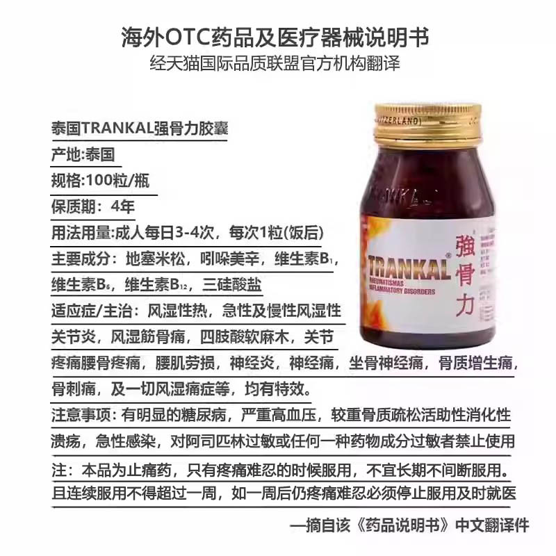 强骨力胶囊进口泰国版 trankal关节风湿骨疼痛专用痛风止痛特效药