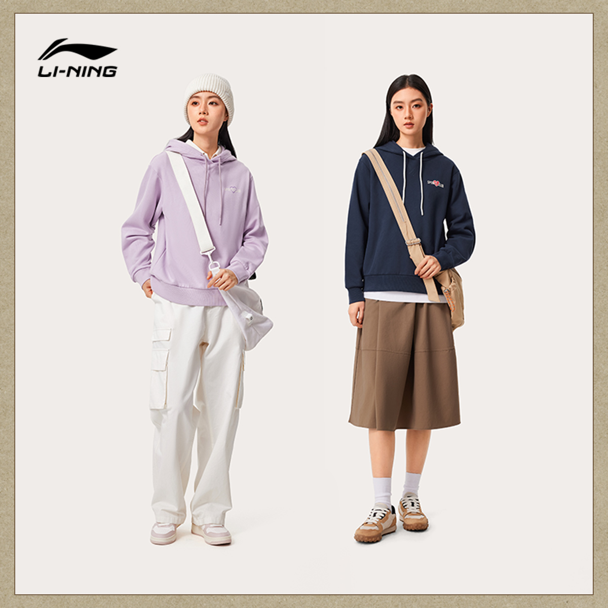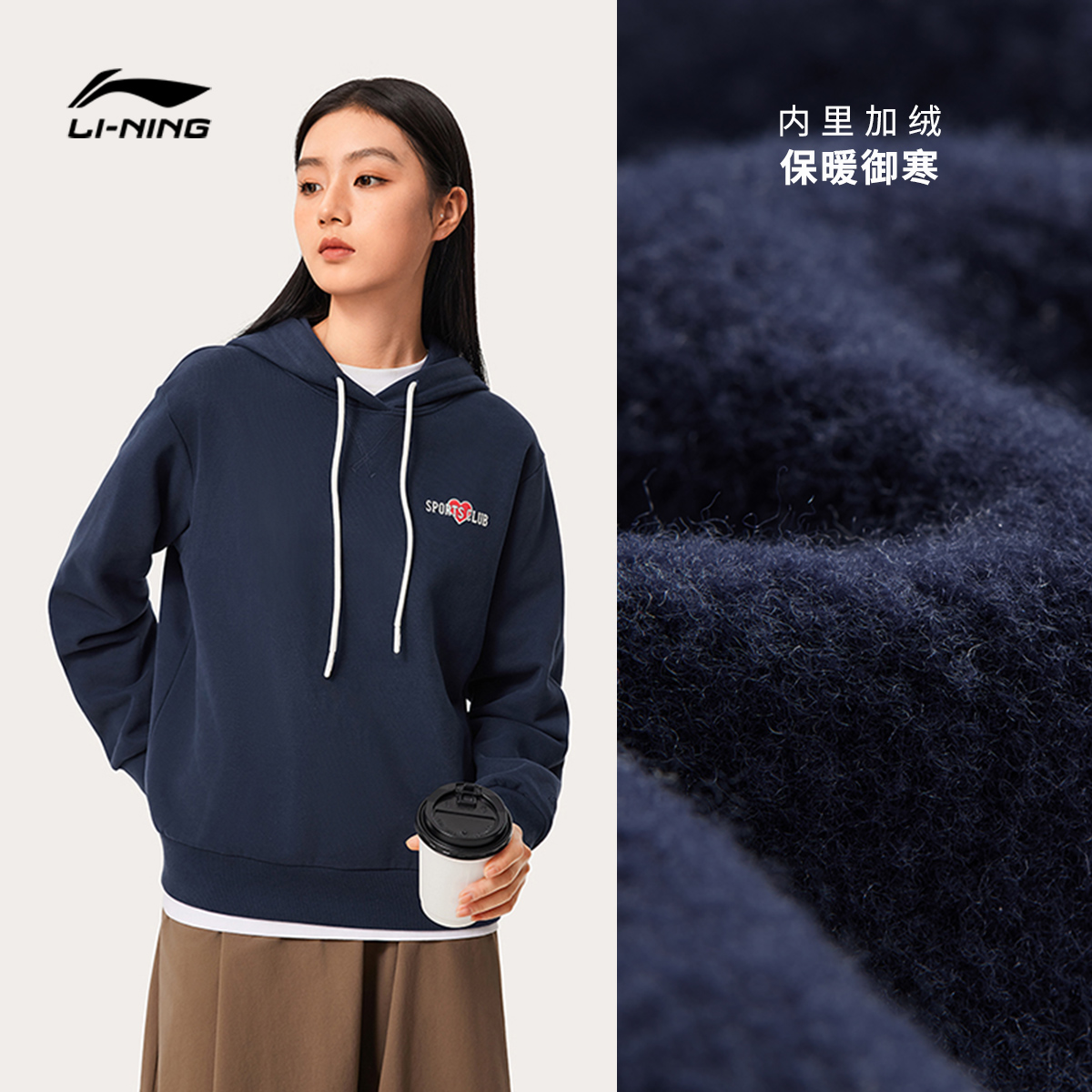加绒加厚宽松保暖运动上衣男士 李宁卫衣女秋冬新款 情侣圆领套头衫