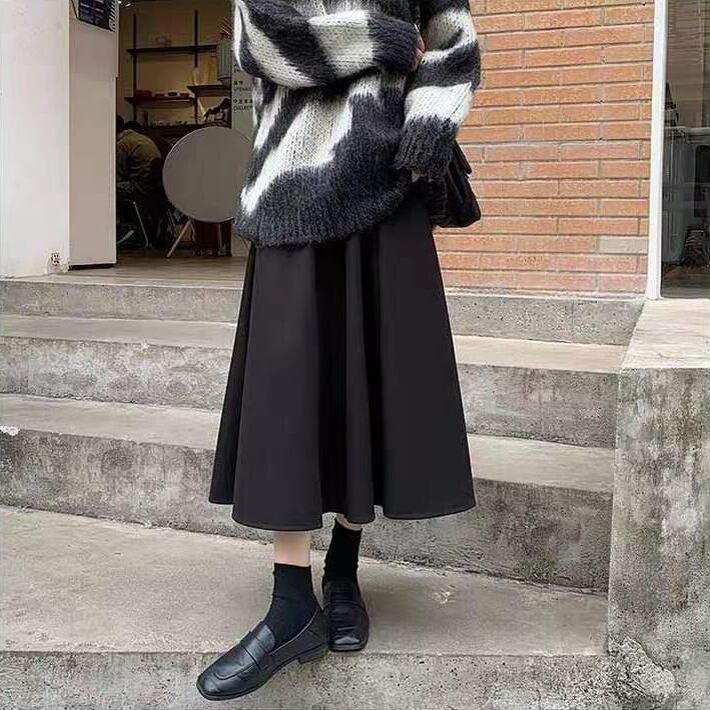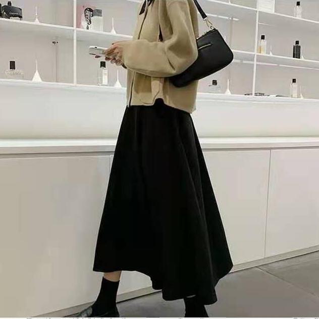 a字半身裙2024秋冬加厚磨毛高腰遮胯大摆长裙宽松显瘦毛呢中长裙