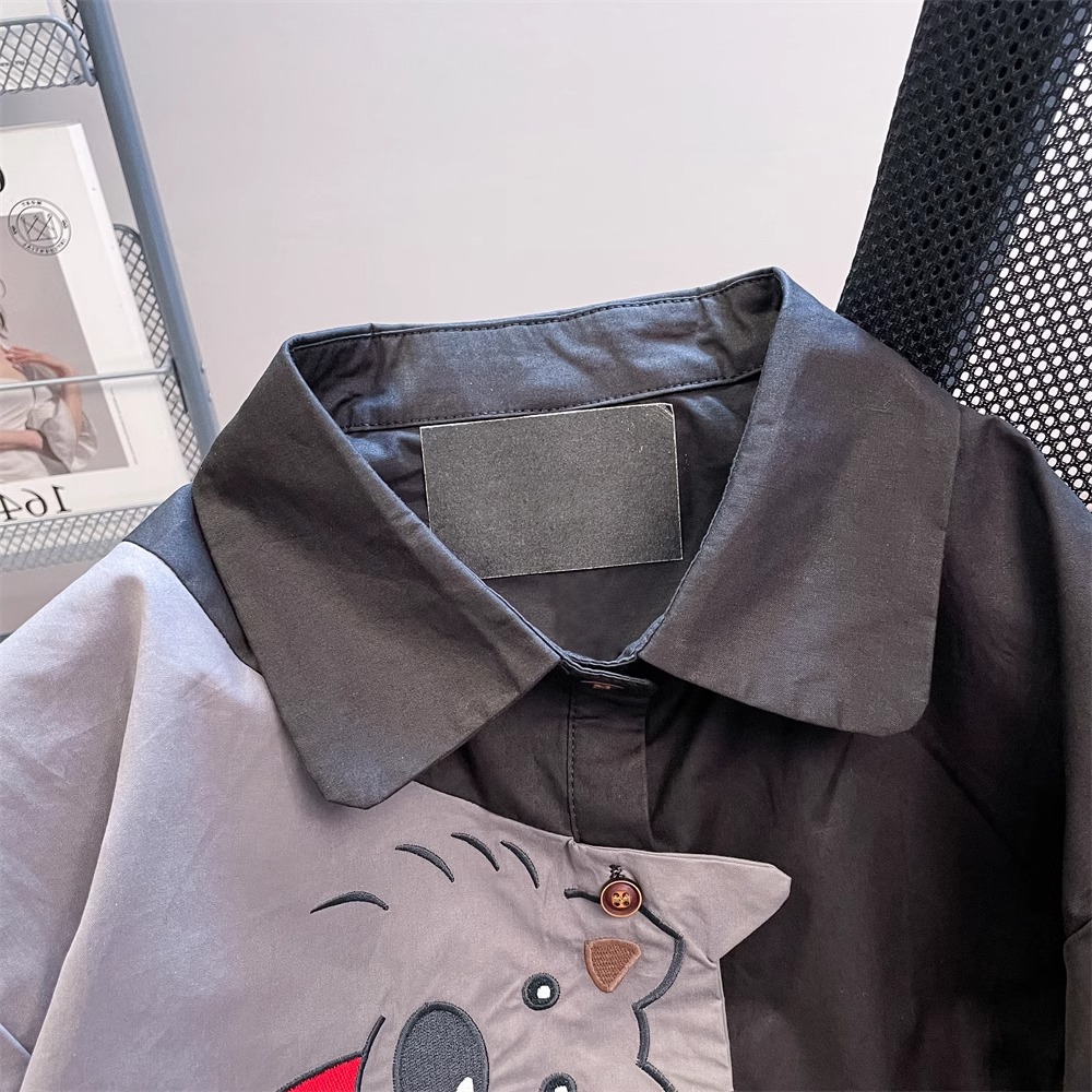 男女夏季 300斤大码 衬衫 日系复古撞色拼接狗狗刺绣短袖 衬衣服2 男装