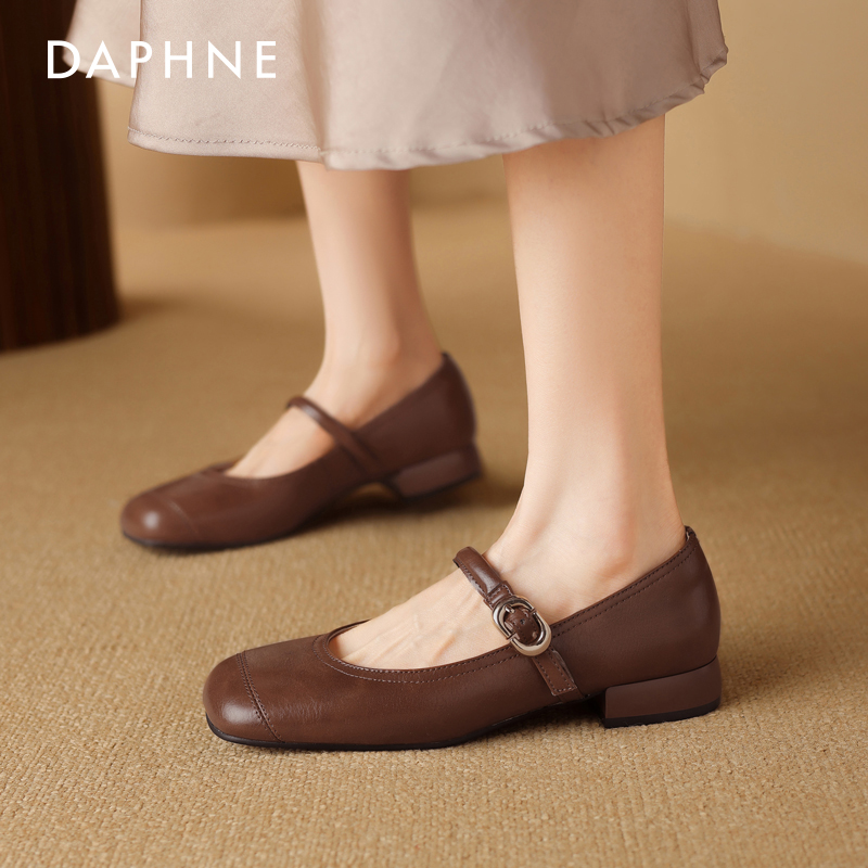 中跟春秋低跟小皮鞋 达芙妮玛丽珍女鞋 温柔风浅口单鞋 秋季 2025新款