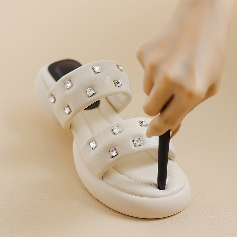 超软大码 精致厚底软底水钻松糕鞋 41一43 女夏外穿时尚 踩屎感凉拖鞋