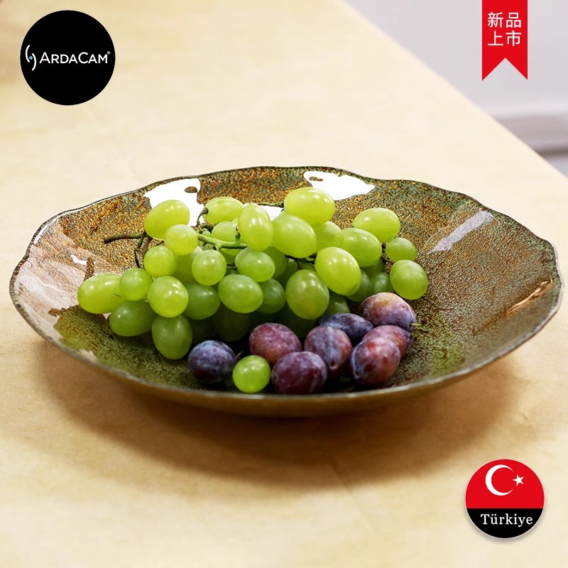 ARDACAM土耳其进口无铅玻璃水果盘家用手工果斗闪金零食盘甜品盘