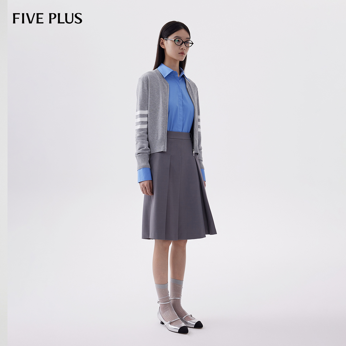 上衣格雷系外套棒球衫 FIVE 开衫 女长袖 领 PLUS针织衫