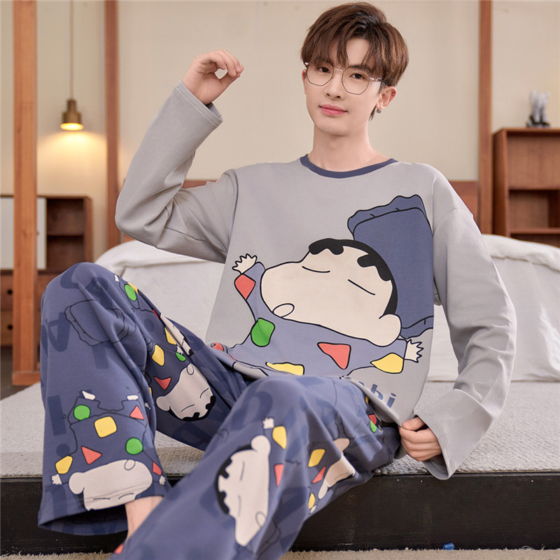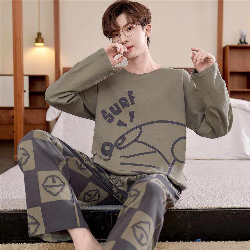 纯棉青少年初中学生10 13岁男生家居服 长袖 大童睡衣男孩春秋季