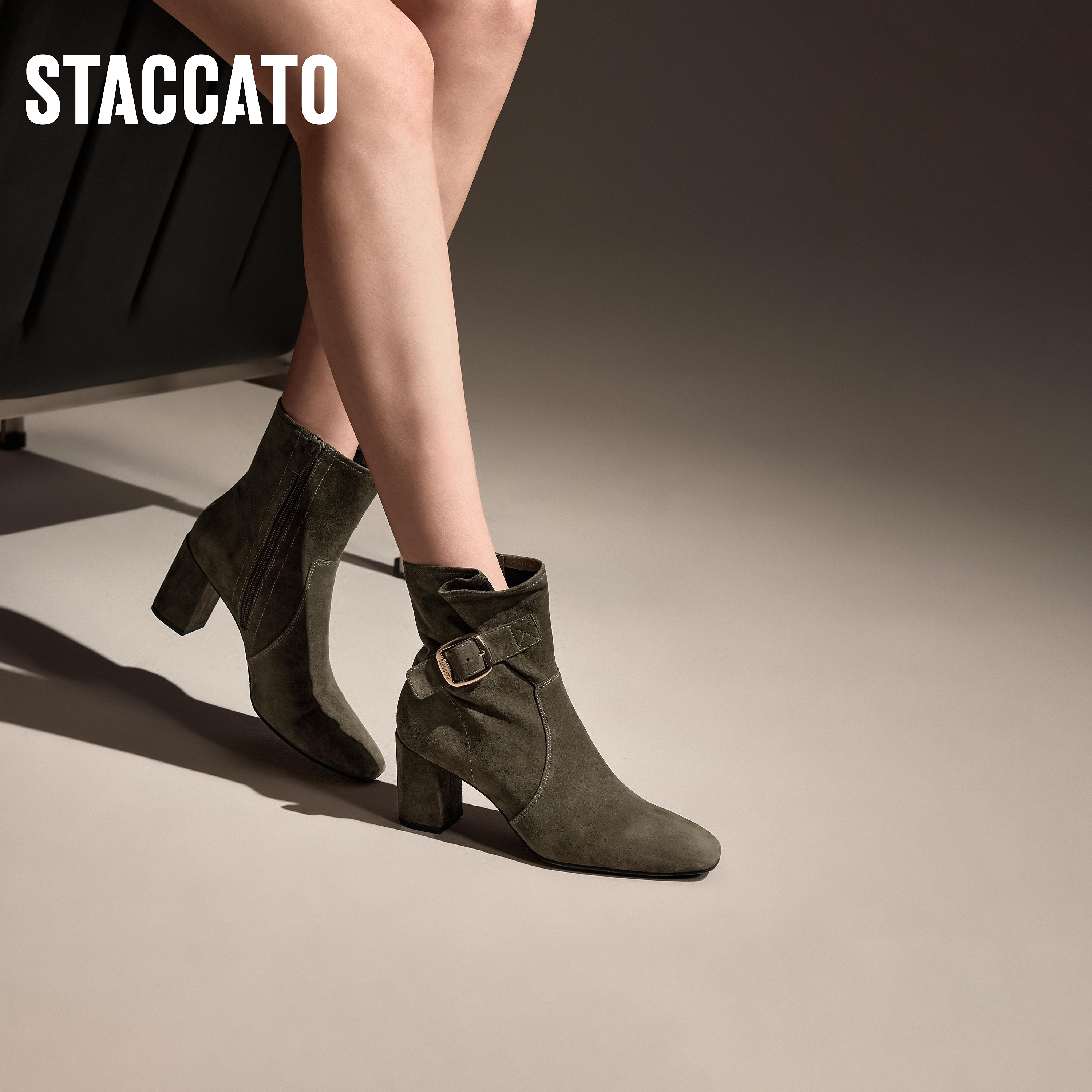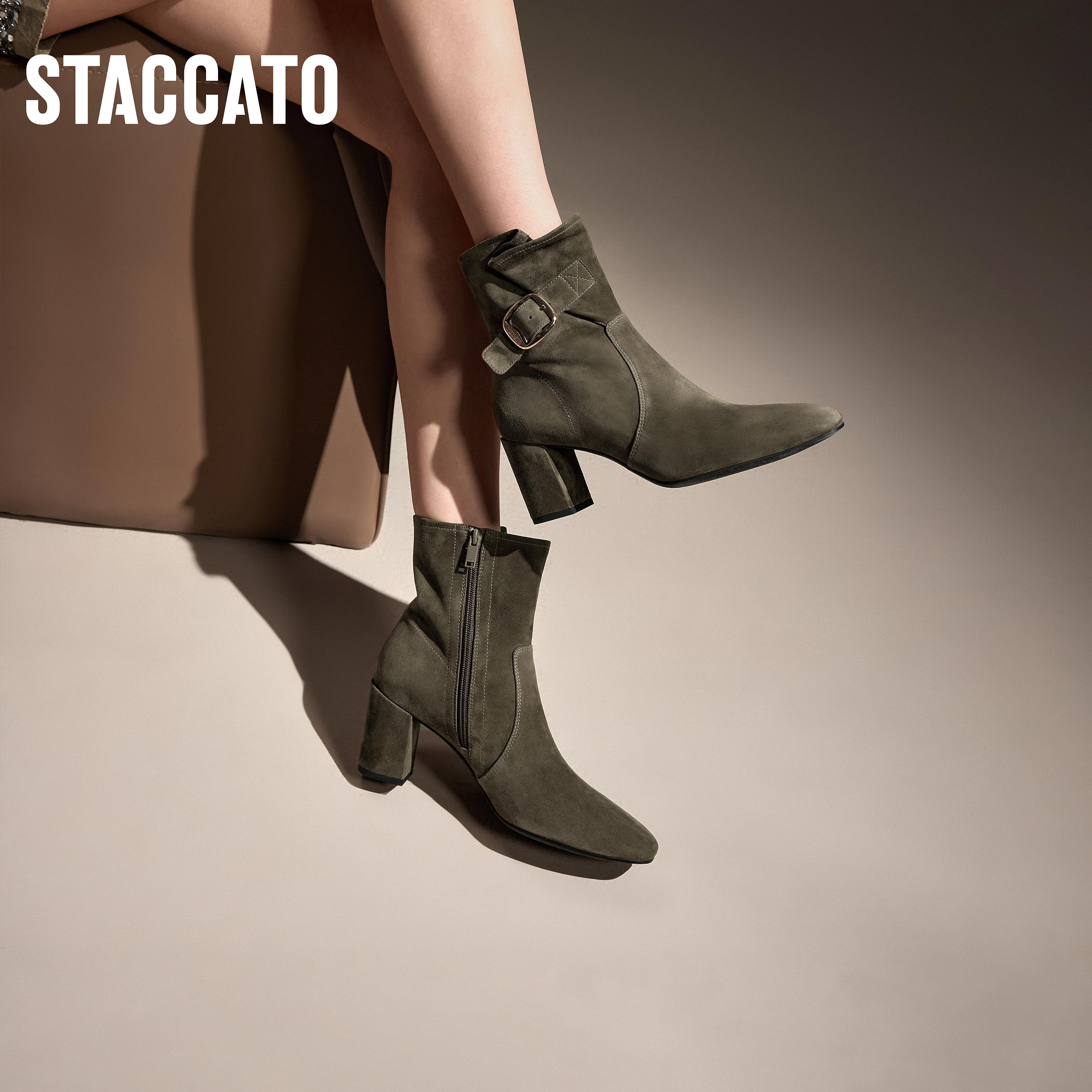 思加图新款 靴气质通勤女靴EYJ06DD4 沙丘恋人高跟短靴时装