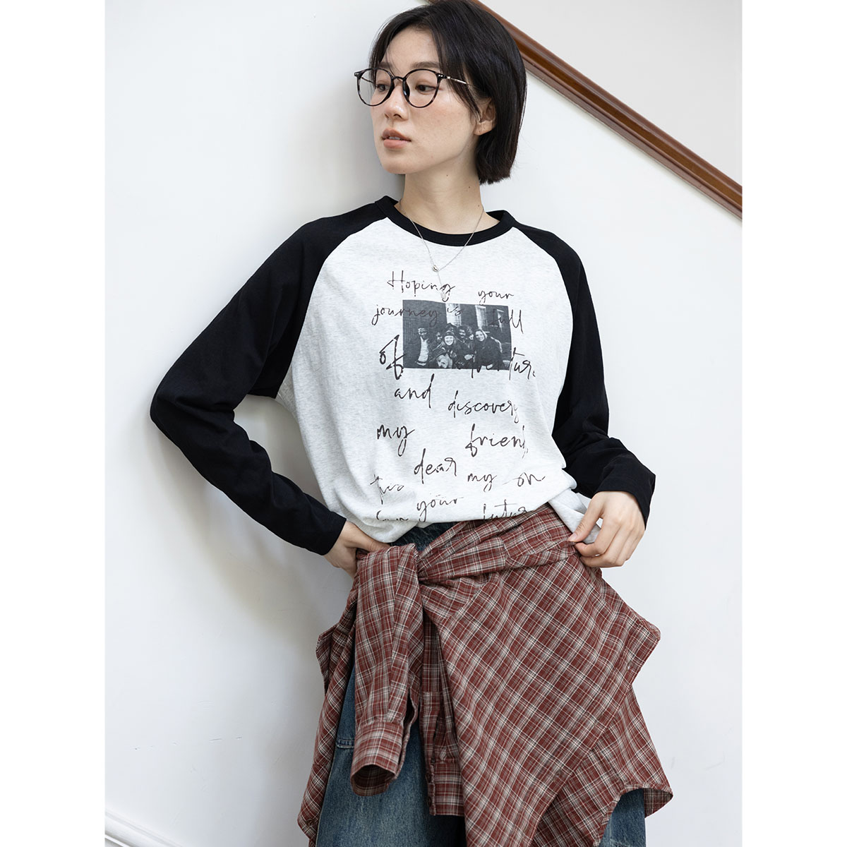复古印花插肩袖 鹿与飞鸟 轻美式 Friendship T恤6106 城市出逃