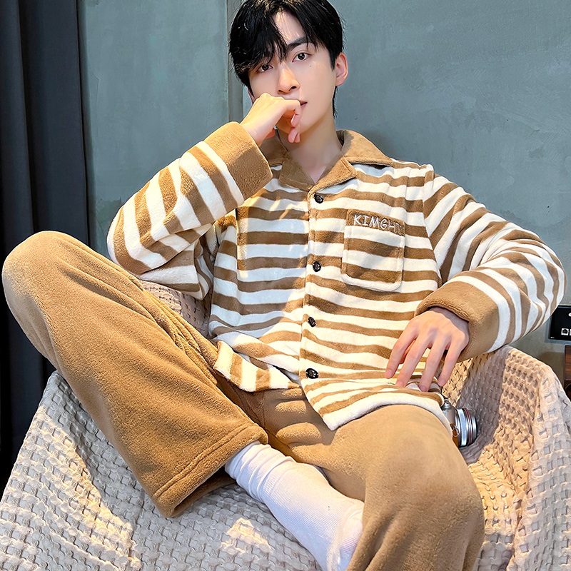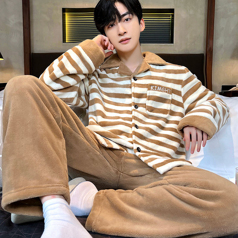 大码 春秋开衫 女士家居服 加厚珊瑚绒睡衣女冬法兰绒加绒套装 秋冬季