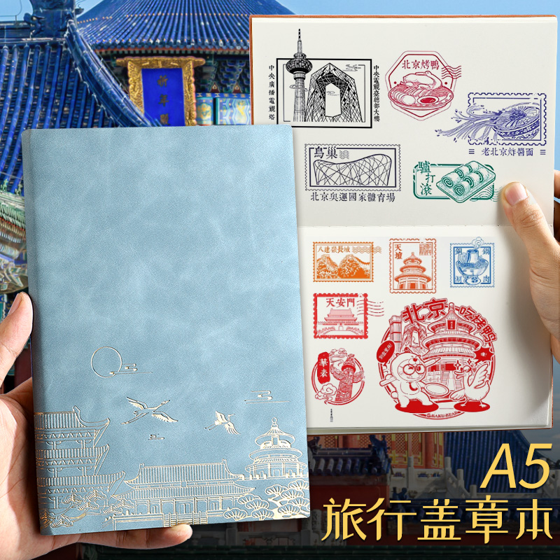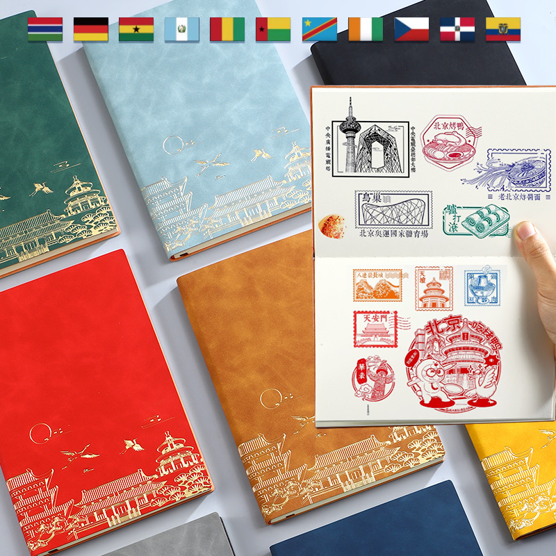 国风文创笔记本子旅行盖章本收集本高颜值空白本皮面方形手账加厚北京故宫南京博物馆旅游纪念印章收集本打卡