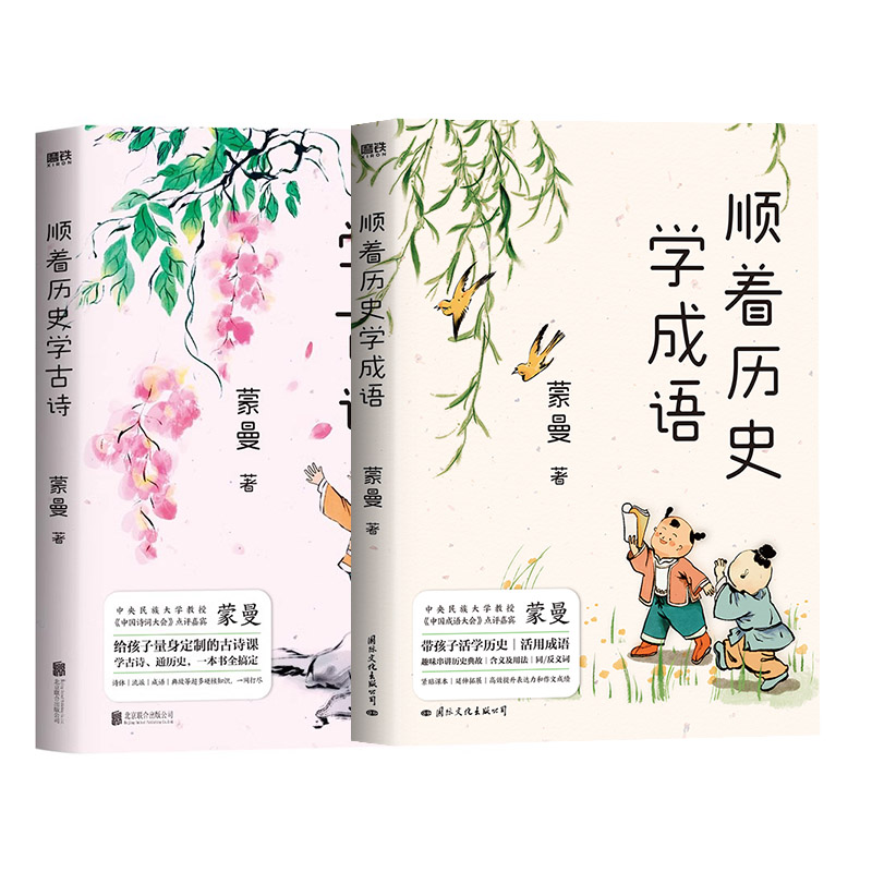 顺着历史学古诗 中国诗词大会 蒙曼 古诗课 顺着历史学成语 给孩子量身定制 通历史一本全搞定文学课外读物磨铁图书正版 全2册