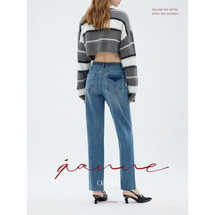 九分廓复古男友风宽松直筒牛仔长裤 新款 2025年秋季 热风女士牛仔裤