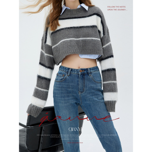 款 女秋季 2024新款 爆款 水泥灰窄版 高腰显瘦小个子直筒裤 阔腿牛仔裤