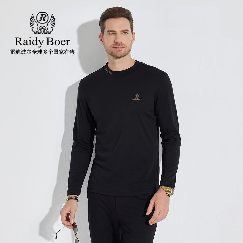 100%棉 刺绣LOGO休闲圆领长袖 Raidy 雷迪波尔男士 T恤6009 Boer