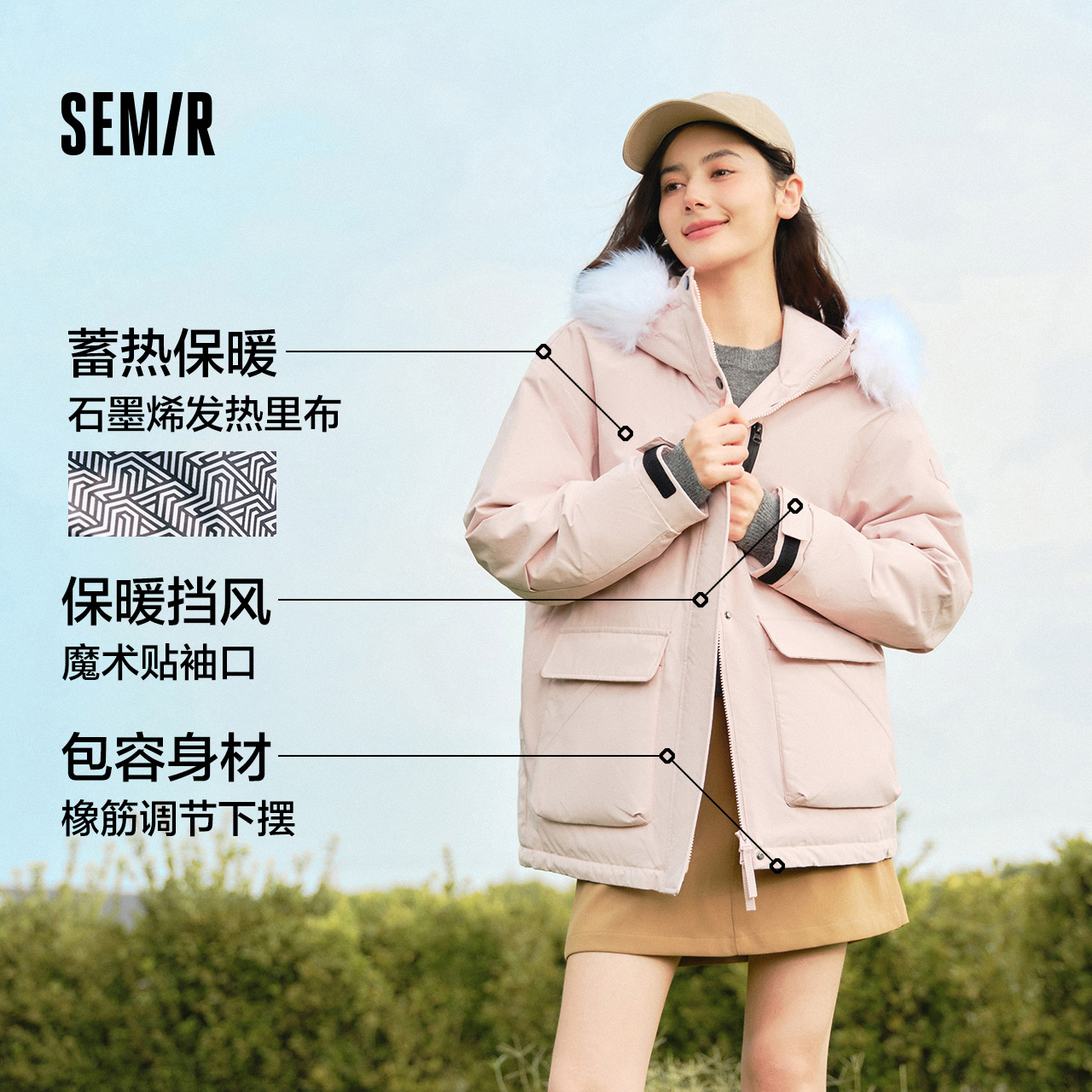 外套 毛领三防工装 森马中国国家地理系列羽绒服女冬新款 2024中长款
