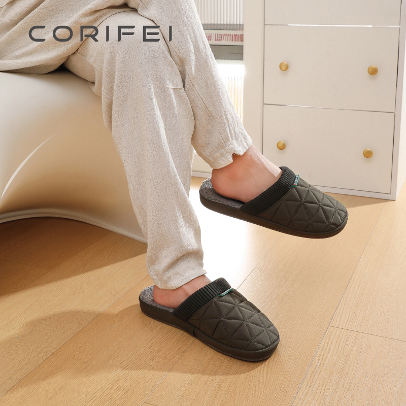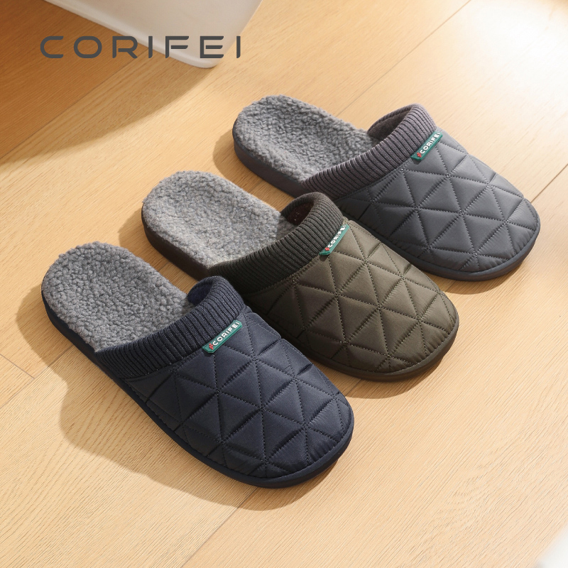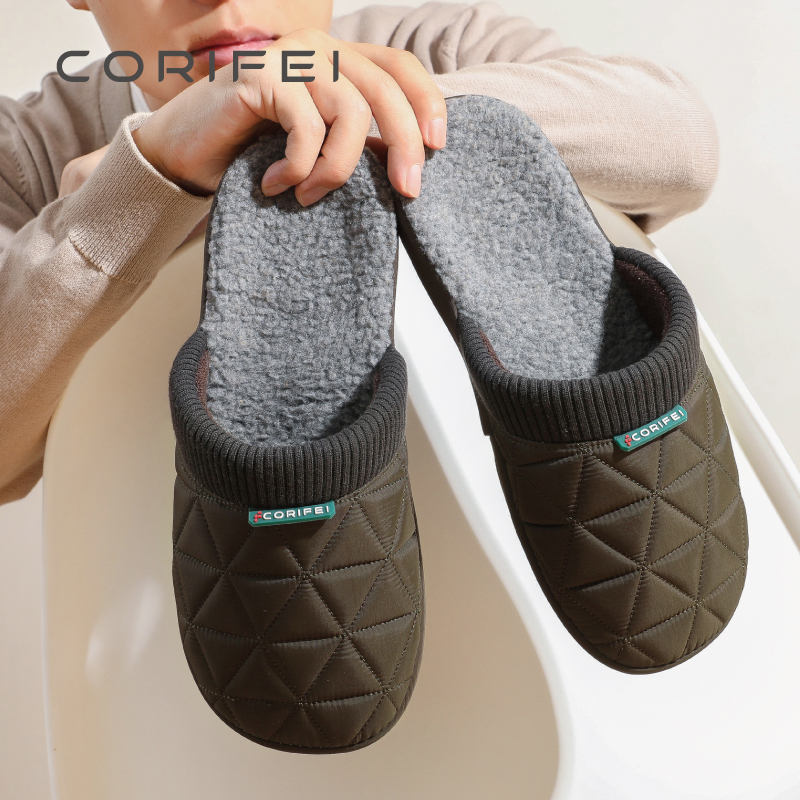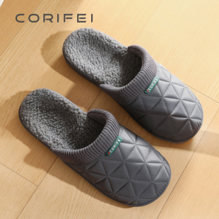 秋冬季 男士 居家厚底防滑防水保暖毛绒轻奢 高级感棉拖鞋 家丽芙新款