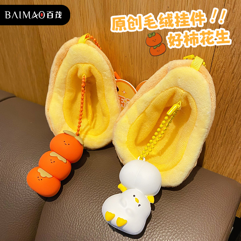 原创好柿发生毛绒玩具2025新款 创意书包小挂件包包挂饰钥匙链女生