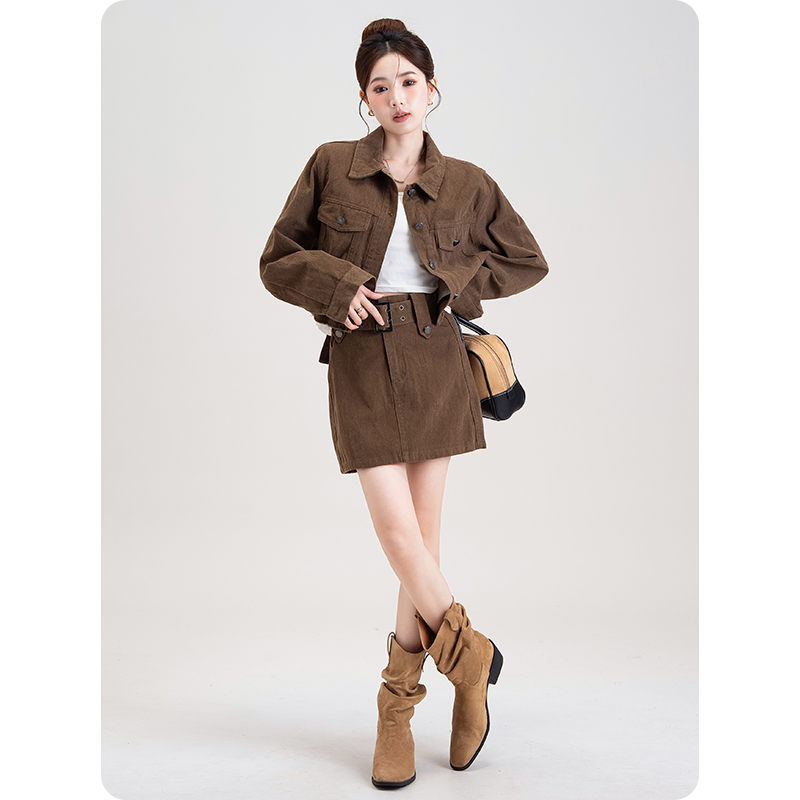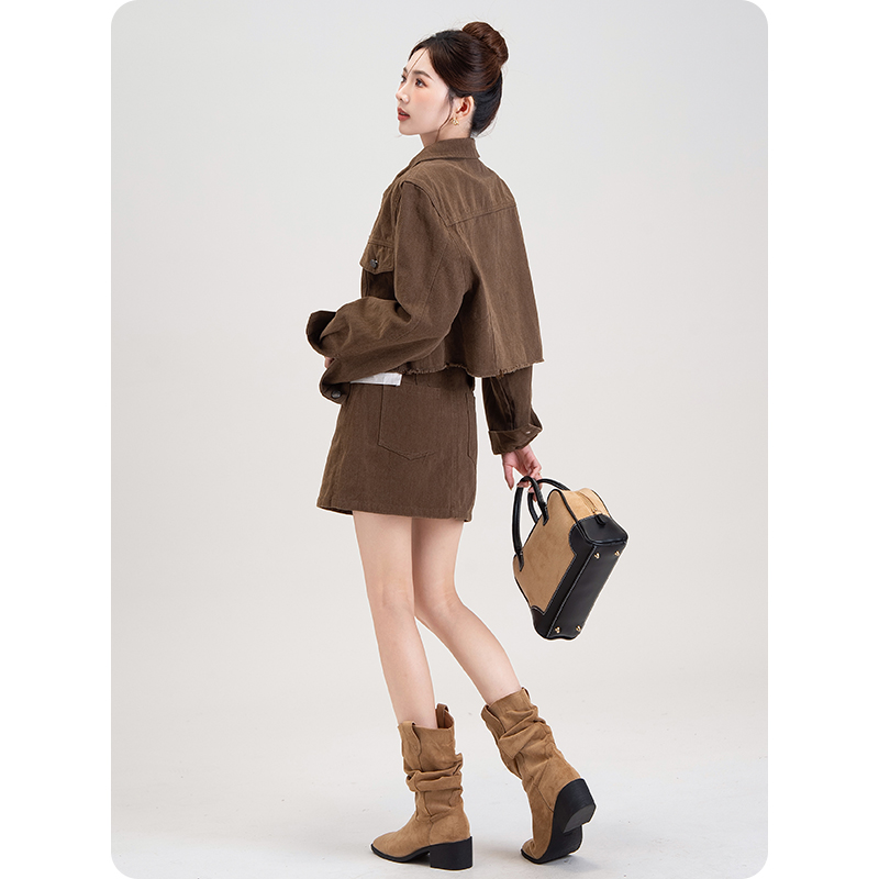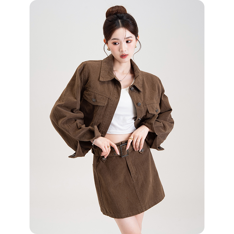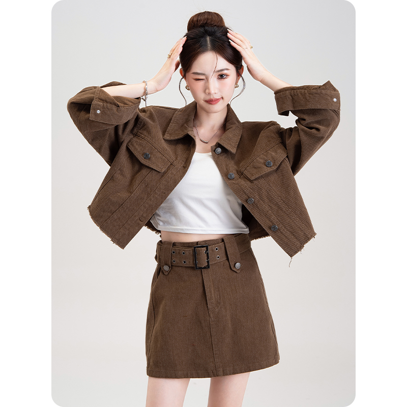 短款 新款 小个子上衣a字半身短裙两件套 女2025秋季 美拉德牛仔套装