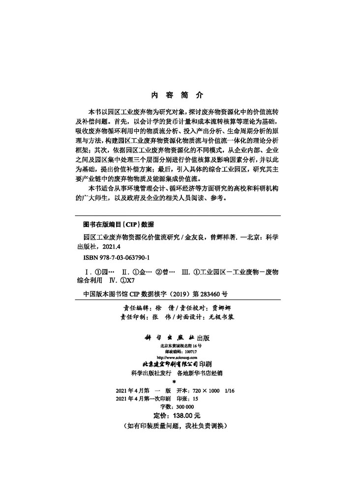 园区工业废弃物资源化价值流研究 曾辉祥 金友良