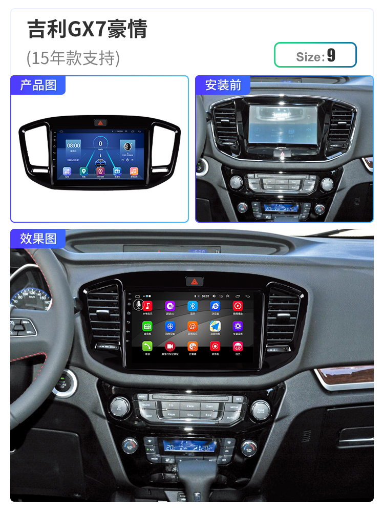 适用吉利全球鹰gx7中控显示屏改装 大屏倒车影像车载导航仪一体机