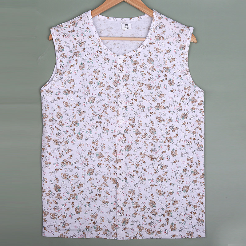 坎肩妈妈老太太薄汗衫 夏季 背心女睡衣老人纯棉开衫 无袖 中老年短袖