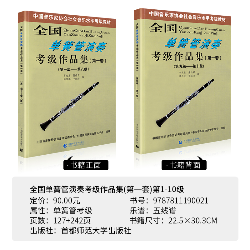 正版 10级2册单簧管考级教材标准教程五线谱曲谱书籍曲集中国音乐家协会王中山全国通用教材书籍 全国单簧管演奏考级作品集第一套1