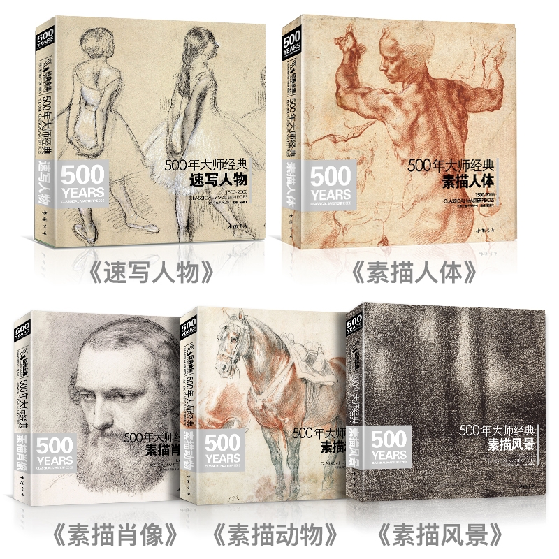 世界名画绘画册书籍向 500年大师经典 西方大师学素描色彩速写油画头像肖像人体风景动物水彩 全集 经典