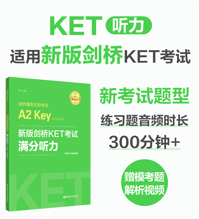 Schools青少版 ket听力模拟练习模拟自测 许华 社 华东理工出版 听力 for Key 新题型剑桥通用五级考试A2 剑桥KET考试满分听力 新版