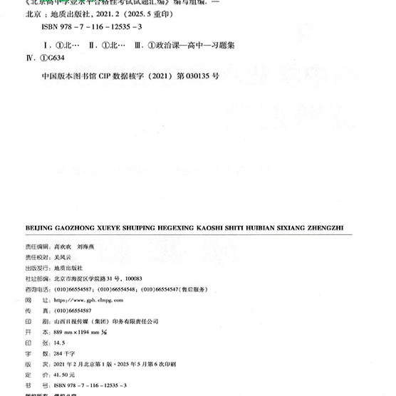 社 2025年新 地质出版 思想政治 万宝成图书 北京高中学业水平合格性考试试题汇编