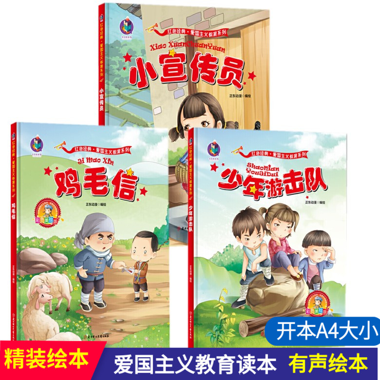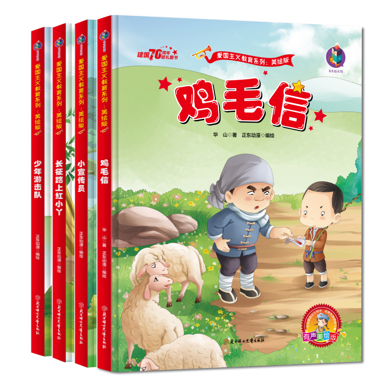 故事绘本儿童爱国主义教育读本幼儿园抗日英雄连环画亲子睡前故事书 全4册鸡毛信 红色经典 小宣传员精装 长征路上红小丫 少年游击队