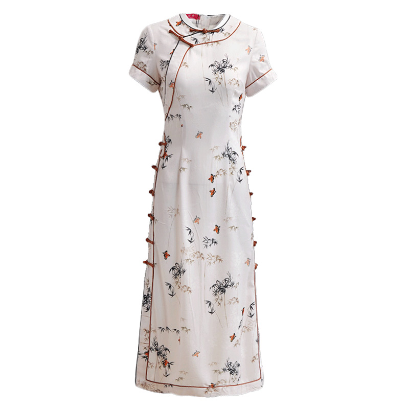 女装 收腰新中式 旗袍连衣裙夏设计感开叉复古气质时尚 中国风改良版