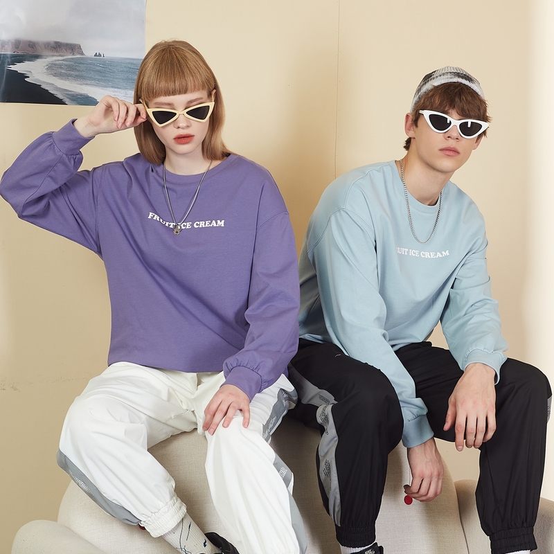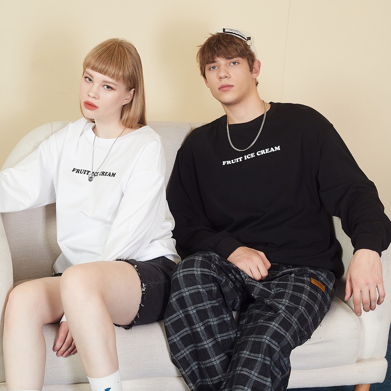 后背潮流图案宽松内搭打底衫 T恤情侣新款 男长袖 唐狮春秋季