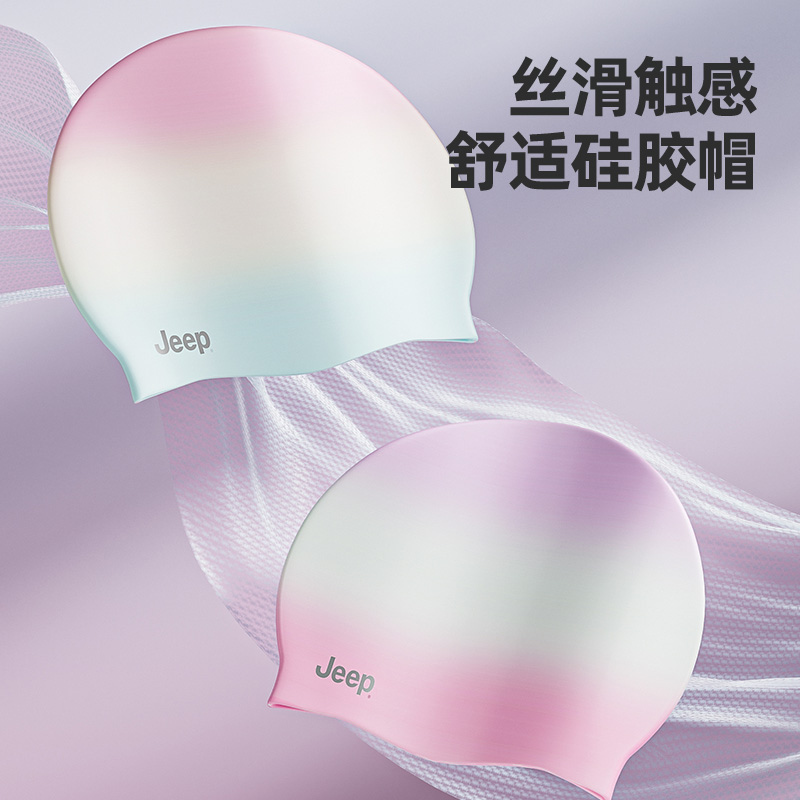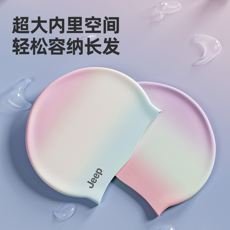 Jeep泳帽女款 长发加大不勒头围舒适高颜值防水硅胶游泳帽 2025新款