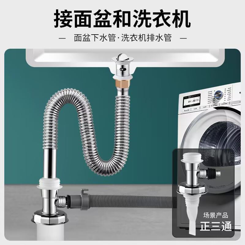 洗衣机专用地漏通用接头厨房下水管三通接头防臭防虫防溢水两用