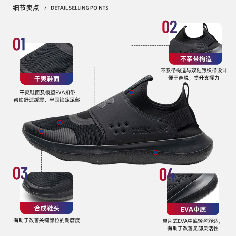 自营 训练鞋 UA安德玛男鞋 轻便透气跑步鞋 一脚蹬穿脱运动鞋 秋季