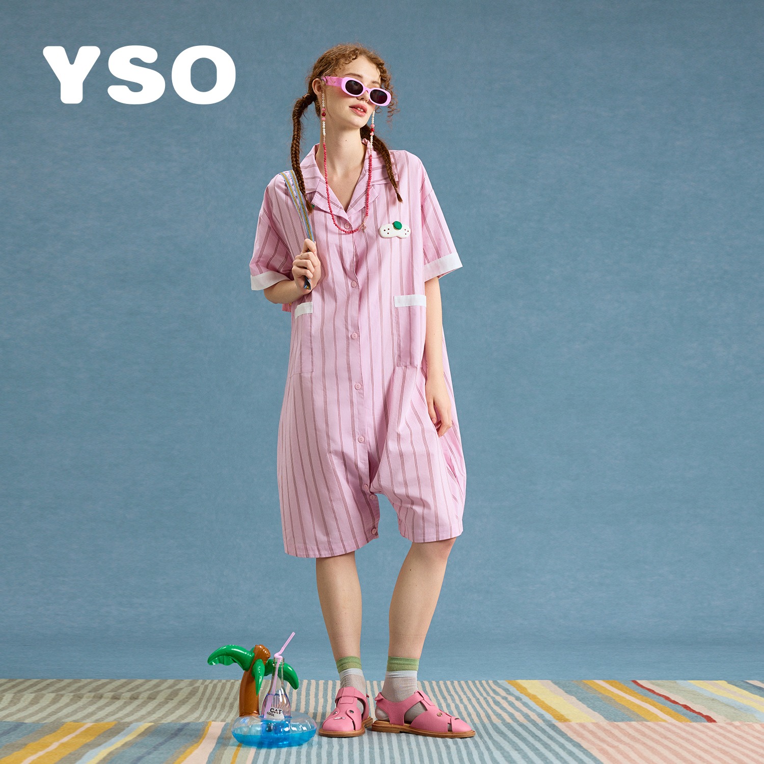连体睡衣女夏睡裙可爱条纹家居服可外穿家居套装 yso 定金预售